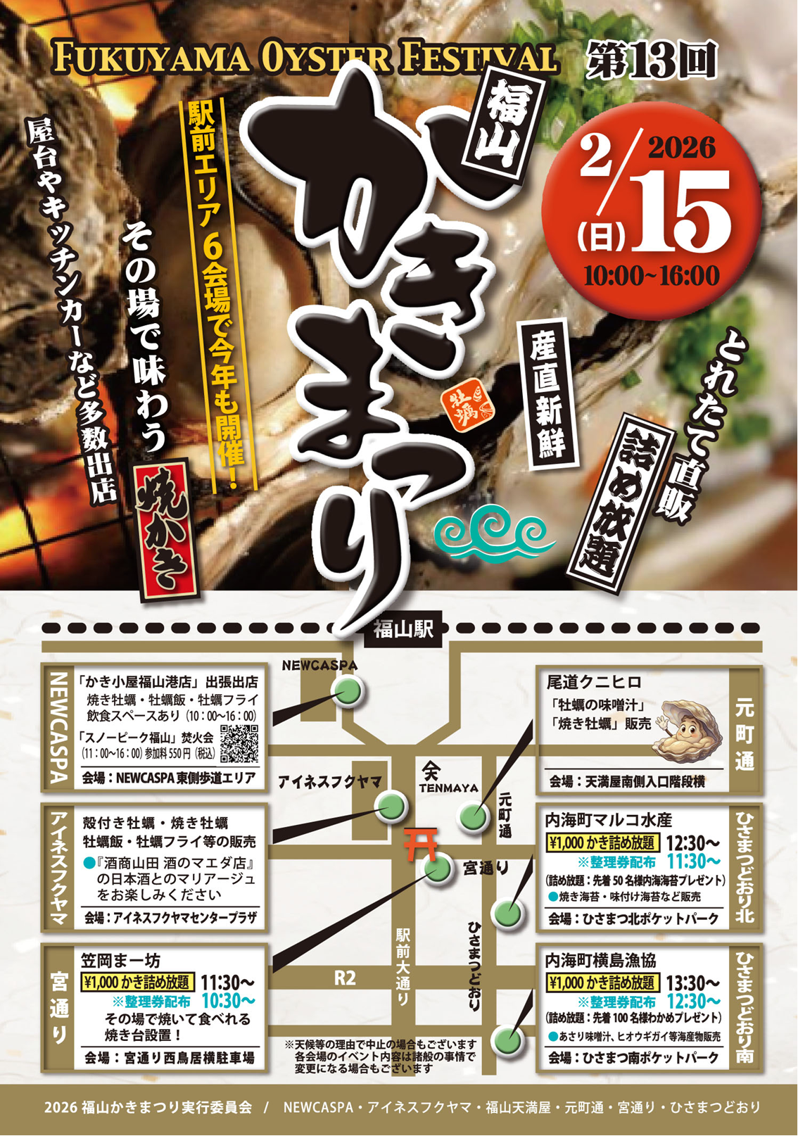 各エリアを回って「福山かきまつり」を楽しみましょう♪